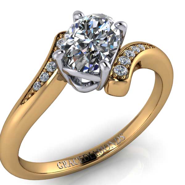 Y&W Gold Oval Cut Diamond Eng Ring with Dmnd Shank